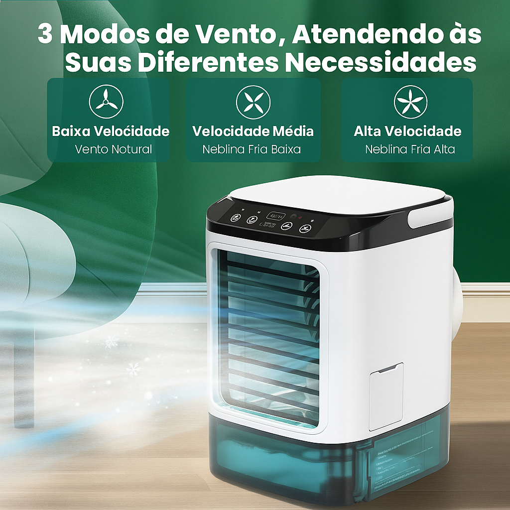 Possui 3 modos de vento + 3 níveis de resfriamento ajustáveis