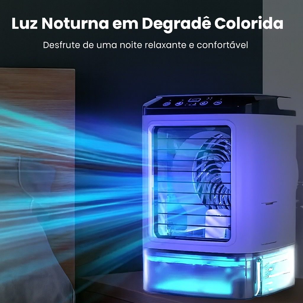 Com 3 modos de vento e 3 níveis de resfriamento, você ajusta exatamente como quer sentir o ar. Use no trabalho, ao dormir, estudando ou relaxando — sempre com conforto sob medida. O LED de 7 cores cria um ambiente ainda mais agradável e relaxante.